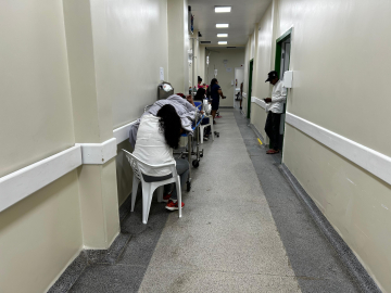 Outro ponto crítico identificado foi a superlotação no setor de observação do hospital. O espaço que deveria comportar 22 leitos, com possibilidade de ampliação para 28, estava com 32 pacientes no momento da visita. Alguns deles estavam acomodados em corredores, aguardando exames, evolução de quadro clínico ou transferência, enquanto acompanhantes também permaneciam no local, aumentando ainda mais o fluxo e o risco de desorganização assistencial.